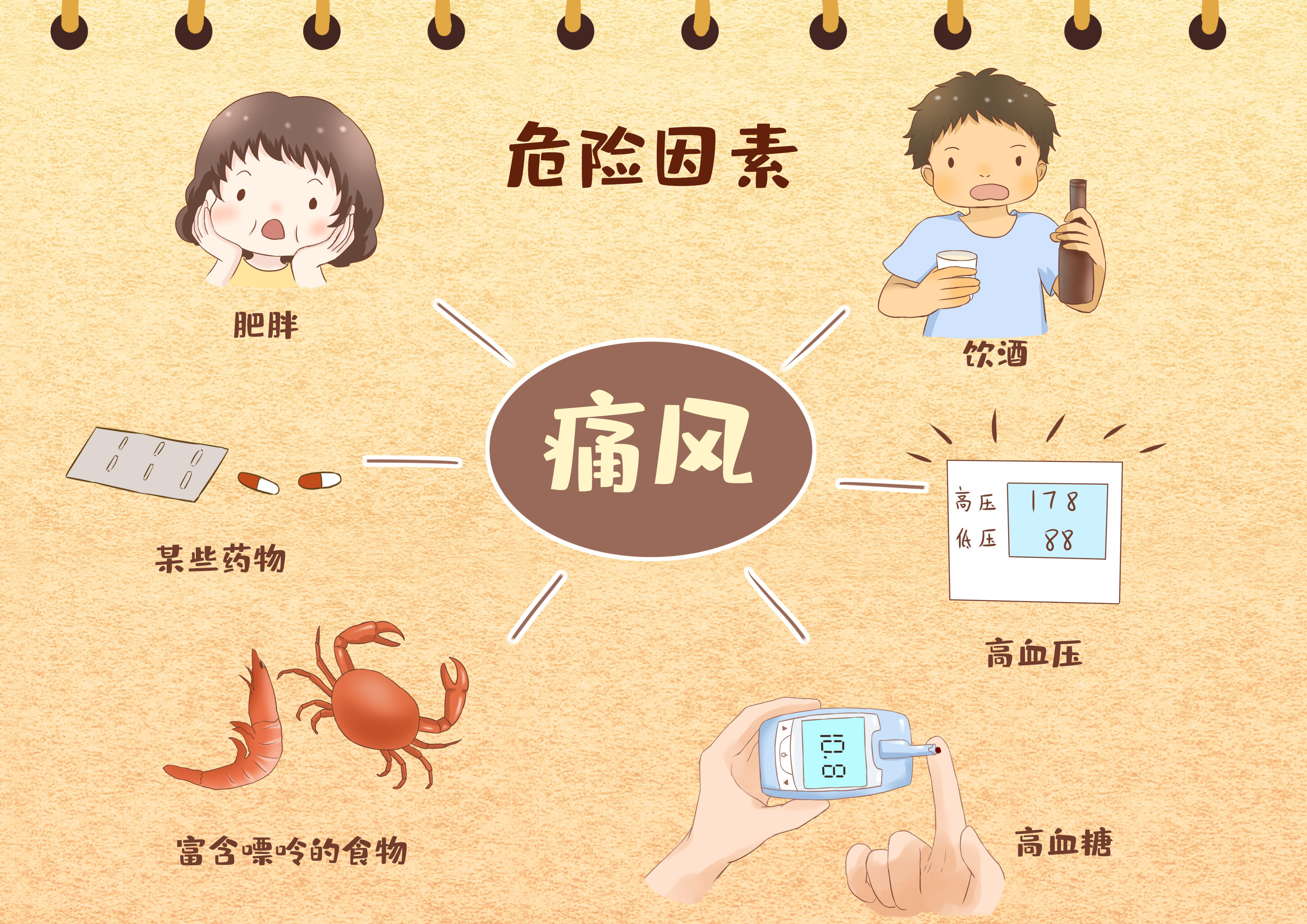 1.饮食不当:长期摄入高嘌呤食物(如动物内脏、海鲜、浓肉汤等)、酒精、含糖量高的食物及饮料、长期外食、暴饮暴食等。
