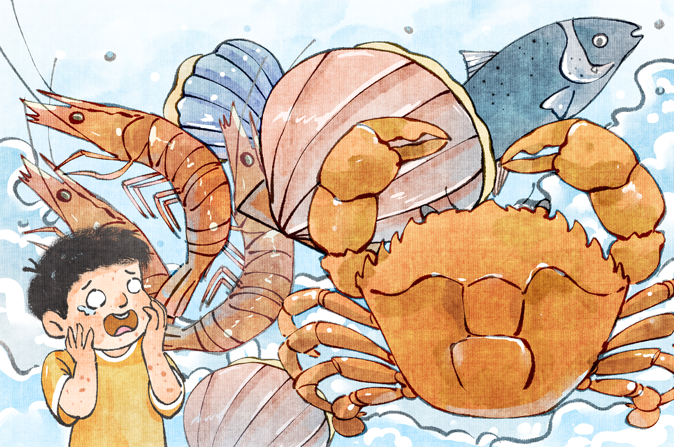 鱿鱼、鱼卵、小鱼干、虾类、贝壳类(蛤蜊、牡蛎等)嘌呤含量较高,痛风患者应该避免进食。