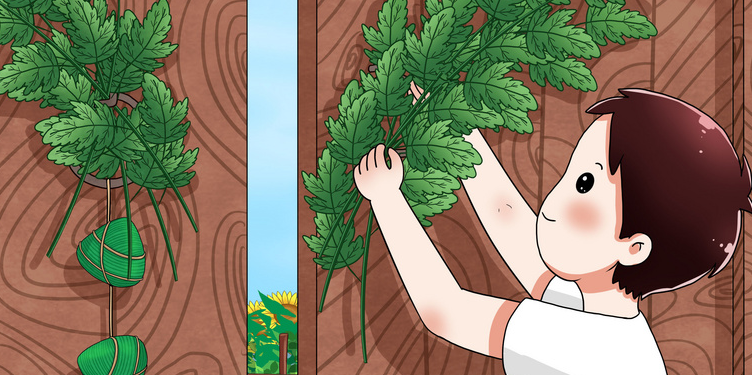 民谚说:“清明插柳,端午插艾”。艾叶是一种药用植物,它的叶片含有挥发性芳香油,可以驱赶蚊虫、提神醒脑。在端午节这天,人们会把家里打扫干净之后,将艾叶插在门楣上。艾叶代表招百福,可以使身体康健,起到防治疾病的作用。