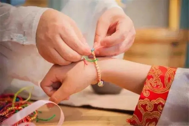五彩绳又称为五色丝、五彩丝,中国古代时期崇敬五色,五彩绳的五色代表五行——赤木水火土,彼此相生相克,蕴含着吉祥如意。所以端午节那天长辈们起床第一件事就是将五彩绳系在孩子的手腕、脚腕、脖子上,以保孩子平安。